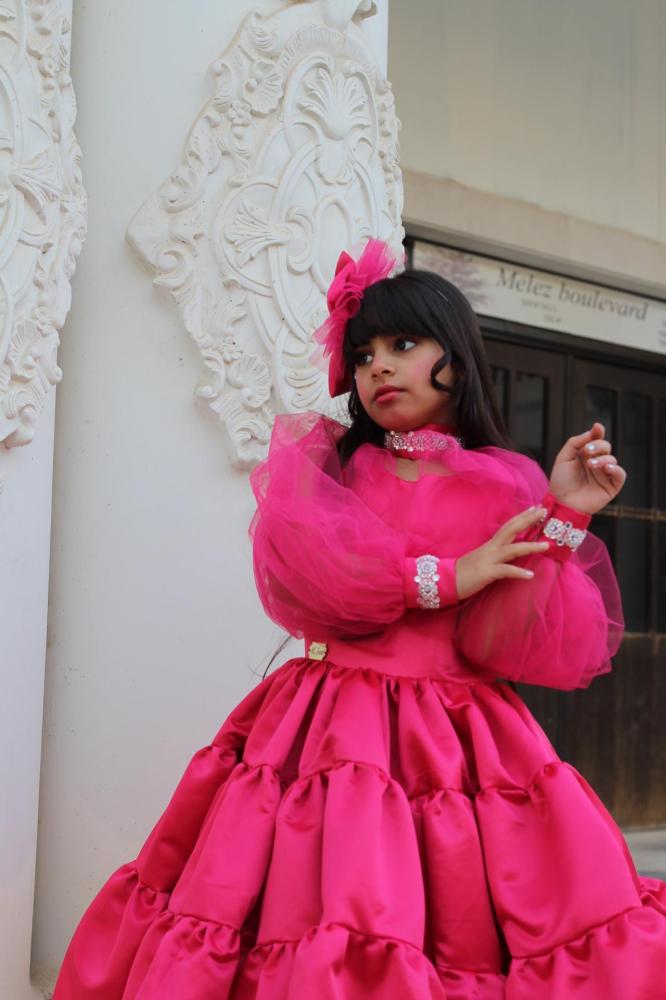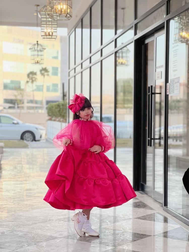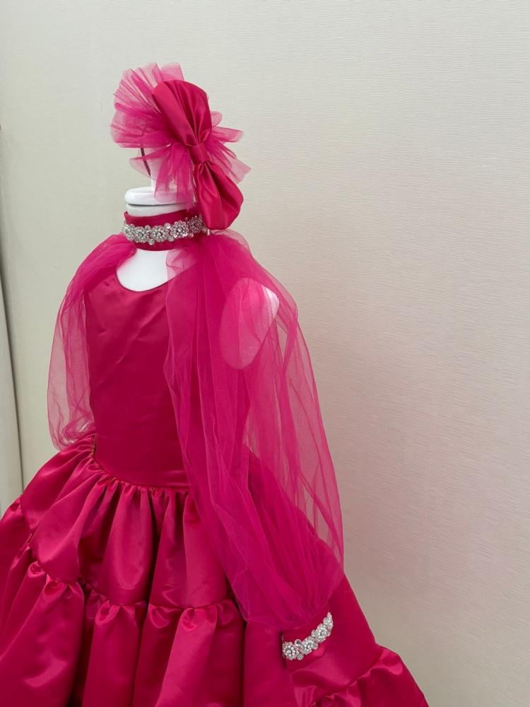 فستان احمر مزين بأزرار+اكسسوار شعر + شنطه